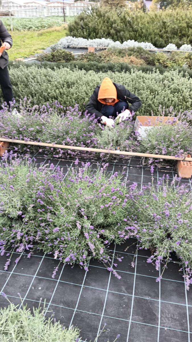 I ragazzi dell'Istituto Ruffini Aicardi di Taggia nel campo sperimentale dell'associazione produttori Lavanda Riviera dei Fiori per conoscere le differenze tra le lavande e raccogliere l'ultima fioritura della lavanda angustifolia IMPERIA, da utilizzare nei corsi scolastici.